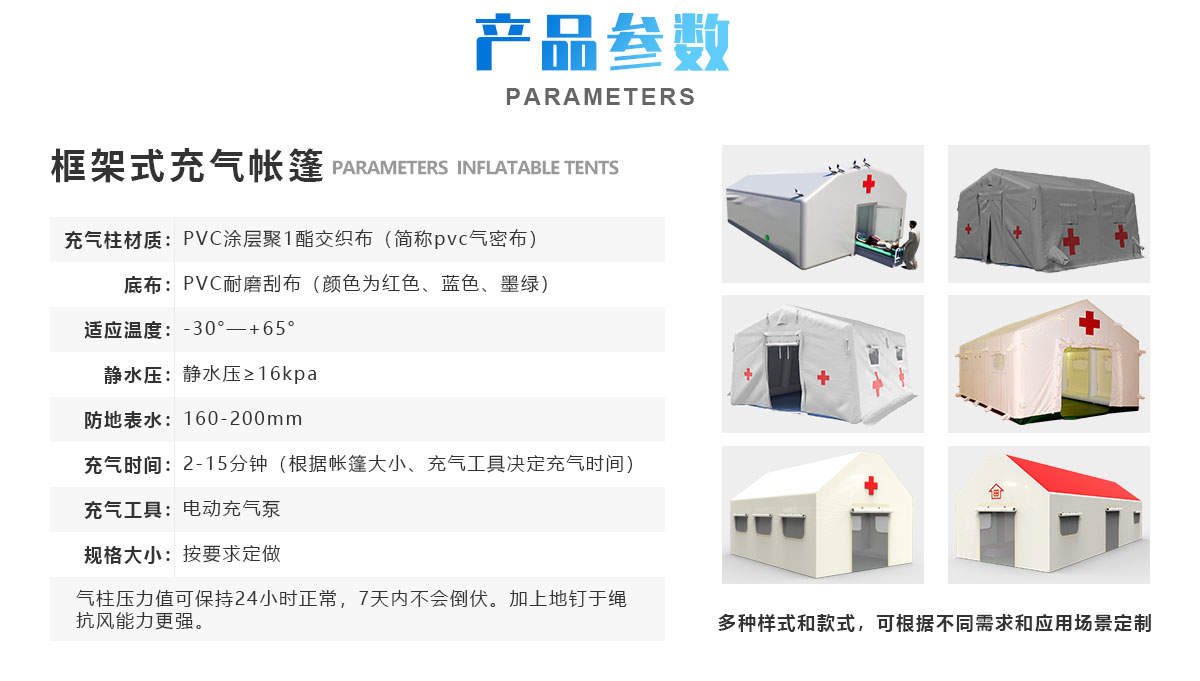 3.病床區和通道采用兩種不同規格的充氣式帳篷搭建而成;